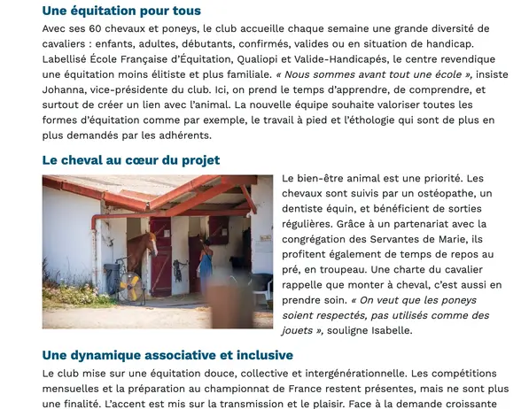 Merci pour cet article sur les objectifs du club, équitation pour tous et bien-être animal.